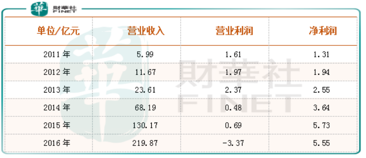 2011年至2016年乐视网营收、利润图表:
