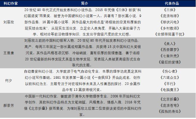国内上游优质科幻内容储备丰厚,以刘慈欣为代表的华语科幻作家作品成熟,粉丝基础雄厚。