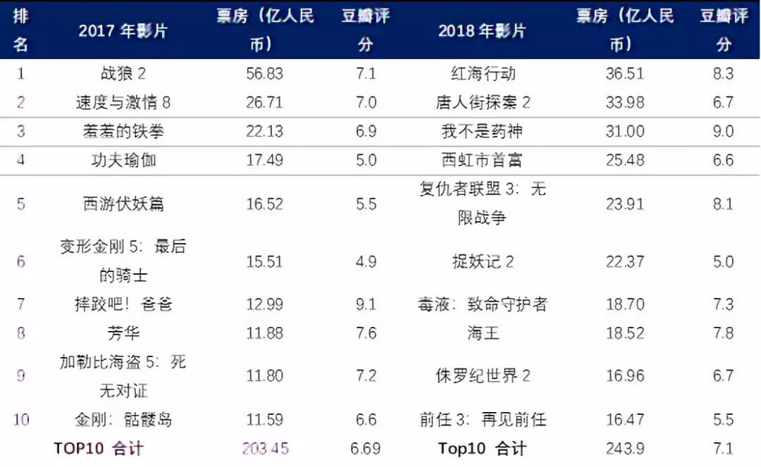 2017-2018票房TOP10 影片豆瓣评分