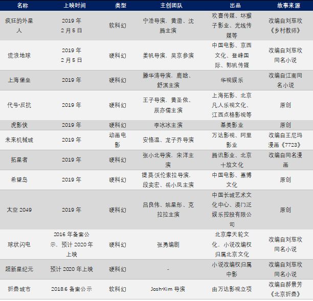除《流浪地球》之外,2019年还有多部优质国产科幻影片上映,有望形成规模效应,带动科幻观影热潮。