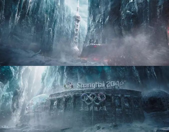 另一方面,影片将中国元素不雷不尬地融入画面设计,如地下城春节的舞狮表演、末日冰雪中的东方明珠电视塔和奥运大厦,这些画面能够让观众产生结构性的文化共鸣和审美体验,而又没有对爱国情怀进行过度上升。