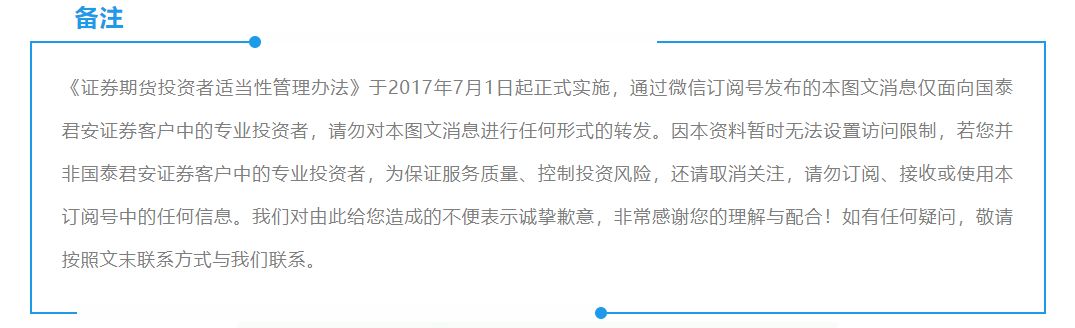 本订阅号不是国泰君安证券研究报告发布平台,本订阅号所载内容均来自于国泰君安证券研究所已正式发布的研究报告,如需了解详细的证券硏究信息,请具体参见国泰君安证券研究所发布的完整报告。