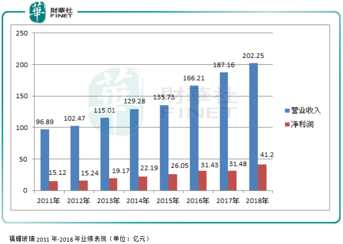根据业绩报,福耀在2018年营收首次突破200亿大关,达到202.25亿元 (人民币,下同),同比增长8.1%;实现利润总额49.62亿元,同比增长34.86%;实现净利润41.2亿元,同比增长31%;每股收益1.64元,增长30%。
