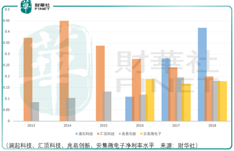 但于兆易创新相反的是,其净利率在2016-2018年的走势中是回落的,从27.8%下降到了19.94%。