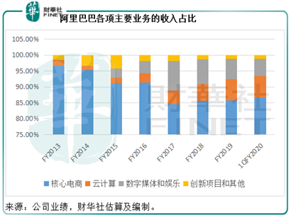 以电子商务起家的阿里巴巴,在成立的二十年之后,依然以电商为最主要的业务部门。