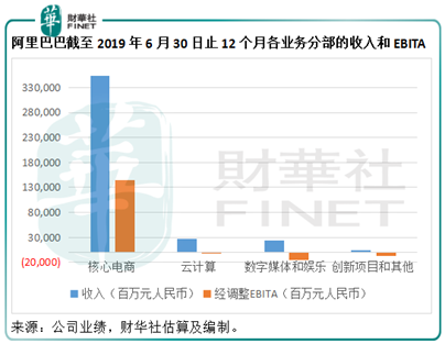 阿里巴巴集团首席财务官(CFO)武卫女士在投资者会议上提供了非常直观的表述,展示核心电商业务于截至2019年6月止三个月(2020财年第一季)的盈利表现。在这一财季,平台核心电商业务的经调整EBITA同比增长27%(或100亿元),至约470亿元人民币,但是这并不包括本地消费者服务(即饿了么和口碑网)、Lazada、新零售(例如盒马)和直营进口以及物流业务(菜鸟),事实上这四项细分业务于期内产生亏损约60亿元,财华社从阿里巴巴集团在投资者日发布的PPT数据估算,亏损额或比上年同期增加约20亿元。