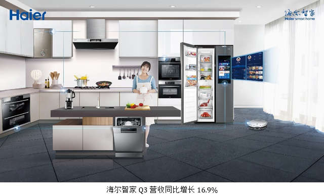 其中,截至2020年9月30日止九个月(“报告期内”),海尔智家实现营业收入1544.1亿元。中国内地市场方面,受益于高效零售体系建设及全面提效,海尔智家于第三季度实现收入同比增长16.3%,销售费用率优化1.4个百分点。值得一提的是,空调收入单季增长27%;报告期内的卡萨帝空调份额从1.2%提升至3.7%,实现翻番增长。海外市场方面,海尔智家坚持自主创牌实现高端品牌全方位引领,第三季度经营利润实现高速增长58%,海外收入增长17.5%,领涨行业,其中冰箱、洗衣机和空调三大产业在20多个国家进入TOP3行列。此外,海尔智家于9月推出的全球首个场景品牌“三翼鸟”落地成果丰硕,为智慧家庭提供全场景解决方案及为全屋整装、局改提供全场景升级服务,第三季度为公司带来生态收入34亿元,同比增长138%;报告期内的场景方案销量录得68.7万套,同比增长24.5%。