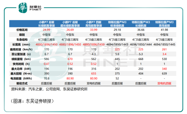 去年7月份,小鹏开始规模化交付P7。从价格上看,P7定价在25至34万之间,与Model 3相若,两者构成直接竞争。