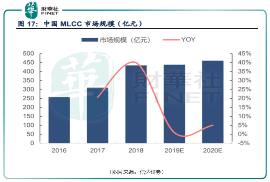 具体而言,据中国电子元件行业协会数据,2016年到2020年全球MLCC市场规模由85.5亿美元增长至162.5亿美元,年均复合增速17.4%。