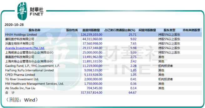 嘉和生物上市之后,高瓴资本通过旗下HHJH、HM Healthcare及Gaoling Fund分别持有公司25.71%、0.36%及2.28%,成为嘉和生物的第一大股东。