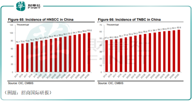 仅以头颈部鳞状细胞癌(HNSCC)和三阴性乳腺癌(TNBC)为例。2019年,以上两种癌症年新增病例合计超过10.6万例。预期到2030年,头颈部鳞状细胞癌和三阴性乳腺癌的新发病例将会分别增至10万及6.28万例。