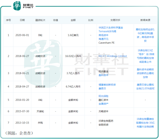 也是从2013年开始,嘉和生物密集获得投资机构的投资,其投资方包括盈科资本、方略资本、高瓴资本为投资公司在海外成立的HH CT Holdings Limited等。在上市前的B轮融资中,高瓴资本又再领投1.6亿美元,投资方还包括华润正大生命科学基金、淡马锡、海通开元等。