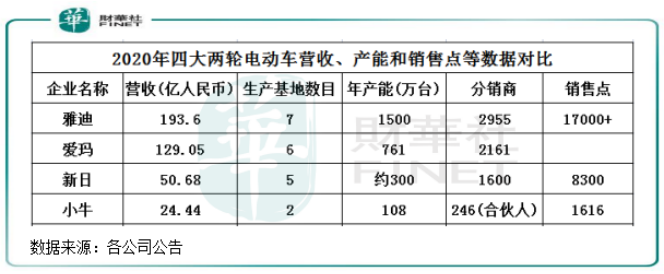 所以新日成为行业四强中唯一一家不设2021年销量目标的企业,而雅迪、爱玛、台铃和小牛(NIU)2021年销量目标分别定为1600万辆、1600-1800万辆、1000万辆,分别较2020年大幅增长48%、101%-126%、200%(估算)及50%-83%。