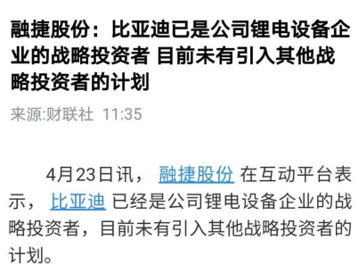 在2021年4月,融捷股份就向外界透露比亚迪成为其锂电设备方面的投资者,融捷股份的锂电设备的大客户自然也就是比亚迪。