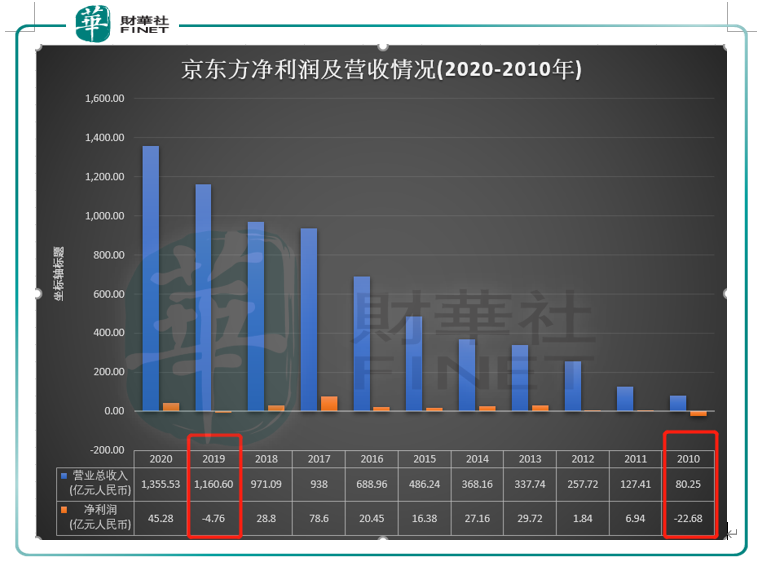 因此,京东方陷入增收不增利困局,京东方营业收入从2010年约80亿元人民币增长到2020年约1355亿元人民币,年复合增长超过30%左右,成长性十足。但让投资者广为诟病的是它的净利润,十年间并没有能够跟随营收而稳定增长。
