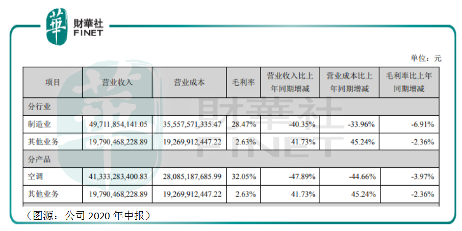 结合去年年中,格力当时的空调销售收入大幅下滑48%(降幅大于营业成本的45%),毛利率为32%,较2019年下滑3.97个百分点,格力已连续两年以渠道改革的手段,削掉空调销售的部分毛利率。