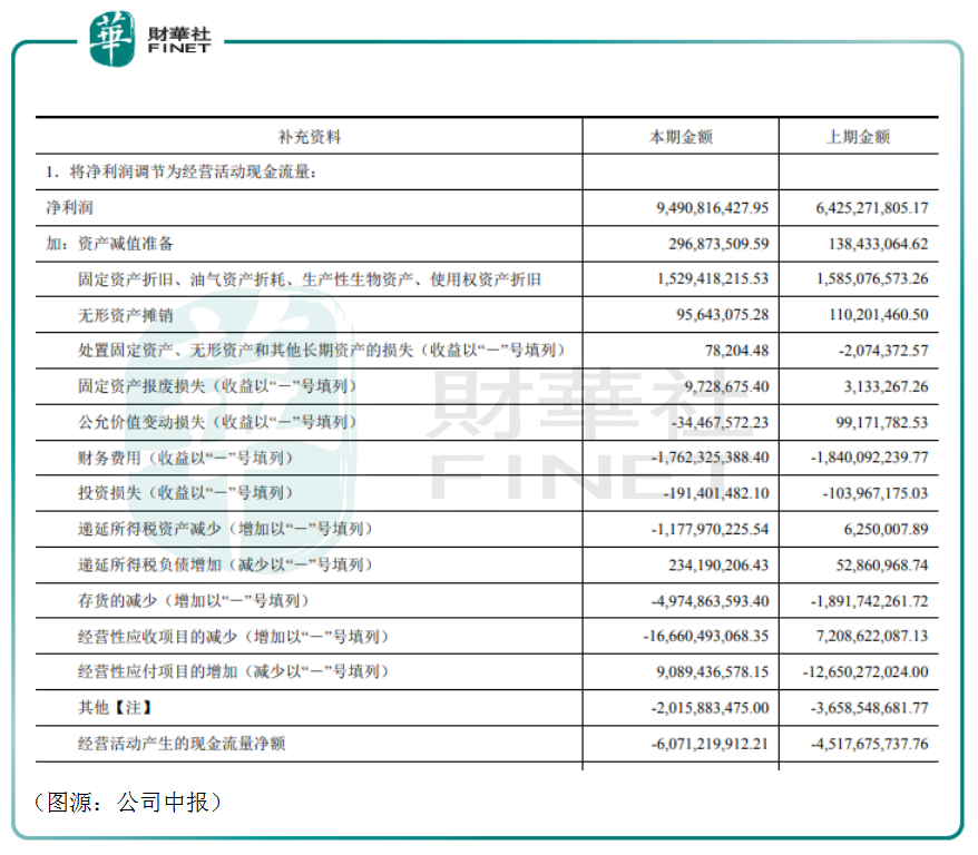 上半年,格力录得净利润94.9亿元,但其经营活动产生现金流量却是-60.71亿元,同比增加34.39%。从经营现金流调节项目来看,挤占现金流的项目主要是经营性应收项目增加166.6亿元。