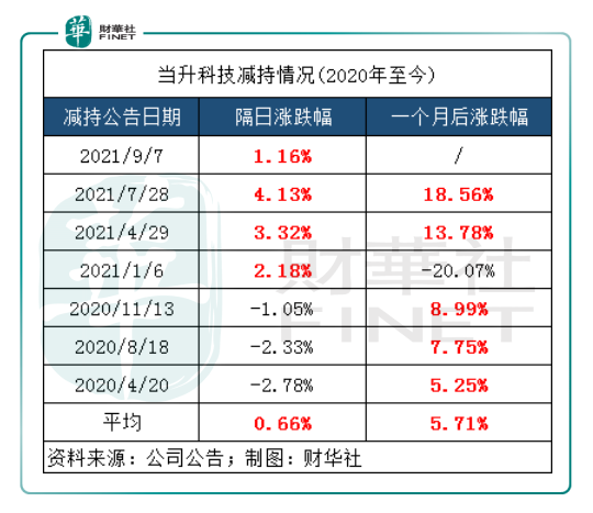 但值得注意的,公司股价并没有因股东频繁减持而下跌。据财华社统计,公司近7次减持公告隔日平均涨幅为0.66%;而近6次减持公告一个月后平均涨幅为5.71%,可见股东的减持不改股价上升趋势。