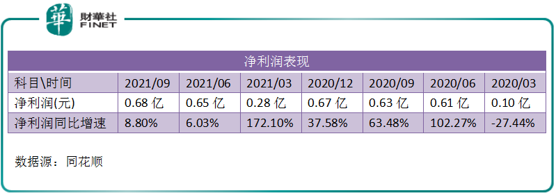 其中,第三季度公司实现营收6.74亿元,同比增长68.93%;实现归母净利润0.68亿元,同比增长8.80%。从上述列表亦可看出,利润增幅从第二季度以来出现大幅回落。