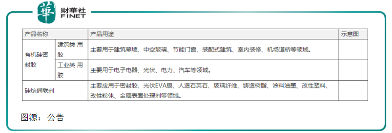 同时,公司有机硅密封胶产品的主要用途分类建筑类用胶及工业类用胶。