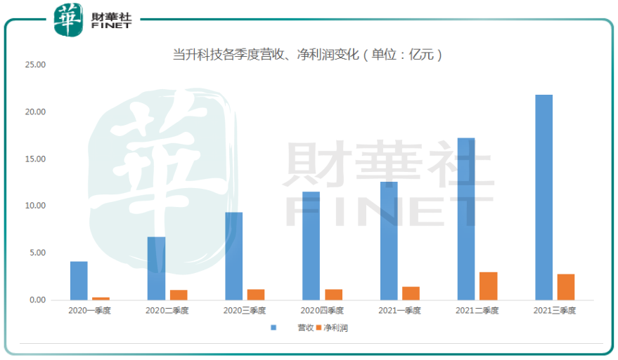笔者梳理了近2年各个季度,当升科技的营收、净利润变化数据,如下图: