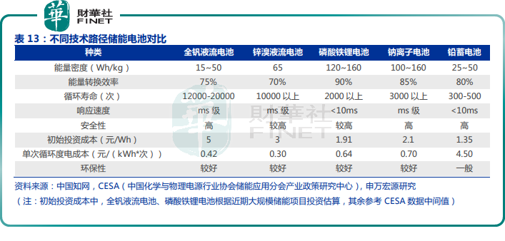 申万宏源指出,锌溴液流电池和钠离子电池目前并无大型储能项目投运,因此在大型储能领域的应用仍有待验证。相反,目前投运项目较多的主要是磷酸铁锂电池和钒电池,其中钒电池作为液流电池的典型代表,具有更高的安全性,兼具长寿命、大容量的特点,因而目前更适合用于大型储能场景。