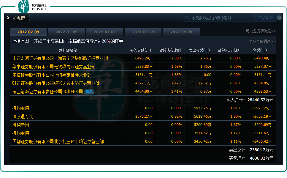 消息催化下,攀钢钒钛于6月24日启动上涨行情,并于7月1日开始连板走势,至今已斩获3连板,期间亦是受到不少知名游资与机构的青睐。