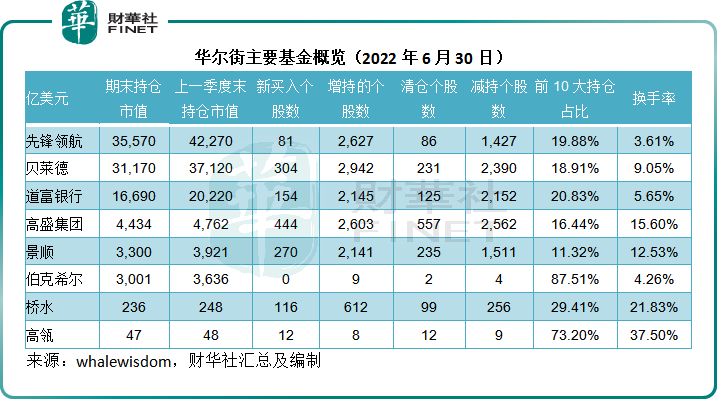 华尔街的多家巨型基金先后公布了截至2022年6月30日止的13F持仓公告,该公告主要反映其所持有的美股数量。