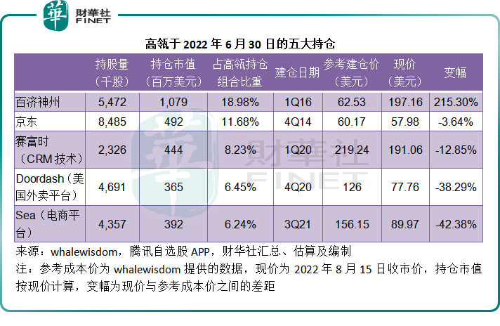 尽管高瓴如此看好平台经济,其持仓表现却不尽理想,尤其平台股的表现,从加仓和建仓的股票来看,跌幅颇大。五大持仓股中,外卖平台Doordash和电商平台Sea的跌幅甚至达到约40%,而挽回表现的却是依靠医药股百济神州(BGNE.US)。