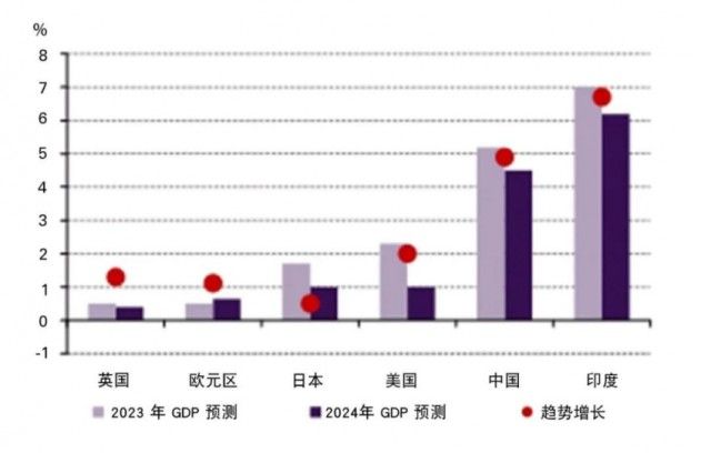 *数据截至2023年11月23日。预测来自彭博社综合报道。基于经济学家共识的“潜在”GDP增长趋势(2024年)。