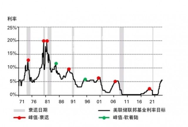 虽然市场看好美联储“软着陆”,但要真正实现绝非易事。从历史上看,在过去五十年的九个紧缩周期中,美联储只实现了两次“软着陆”,另外七次均以衰退告终(图2)。这个结果其实完全符合预期:随着利率持续走高,金融市场和实体经济面临的压力都将逐步增加。