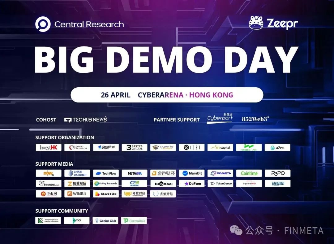 香港—— 全球领先的 Web3.0 活动 Big Demo Day 第十二期即将于 4 月 26 日在香港数码港盛大举行。本次活动由知名科技企业 ZeeprLabs 赞助,Central Research 主办,并得到 Techub News 的联合主办以及数码港、852Web3 等机构的合作支持。