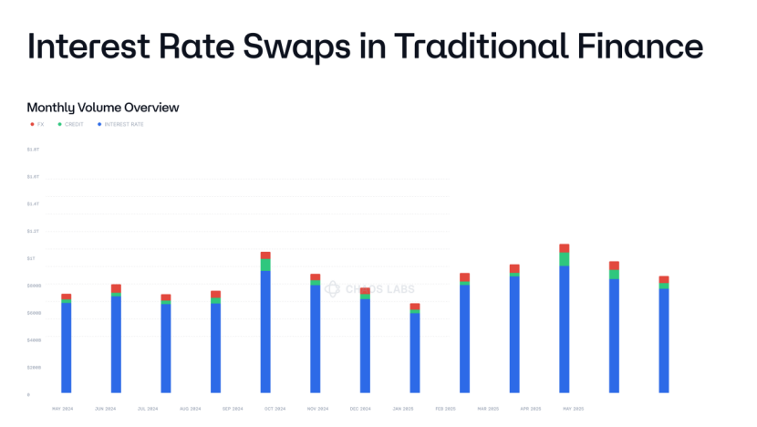 参考TradFi的衍生品市场结构,利率互换市场占据了绝大多数交易量。永续合约相当于加密资产衍生品的基石,与其密切相关的资金费率衍生品市场或将成为整个DeFi生态潜在规模最大的新兴市场之一。