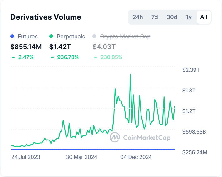 永续合约则是最主要的交易品种,目前日均交易规模约1万亿美元。