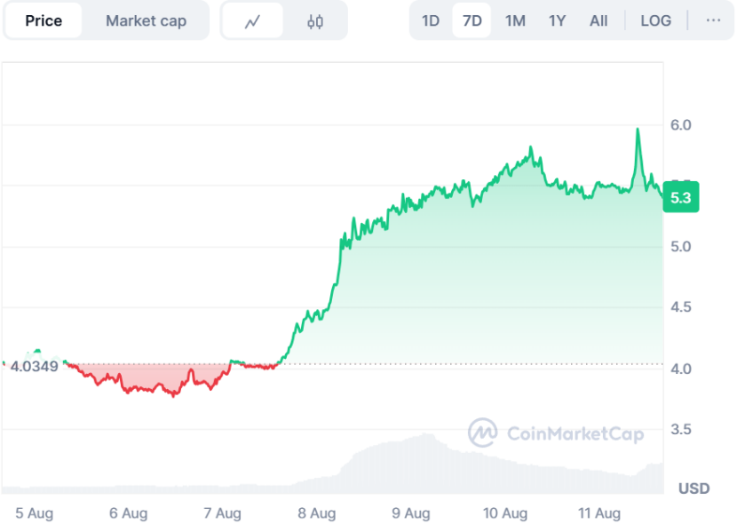 Boros在8月6日一经发布,$PENDLE周内一度涨超40%,价格逼近6美元。强劲的涨势也验证了市场对其潜力的认可。