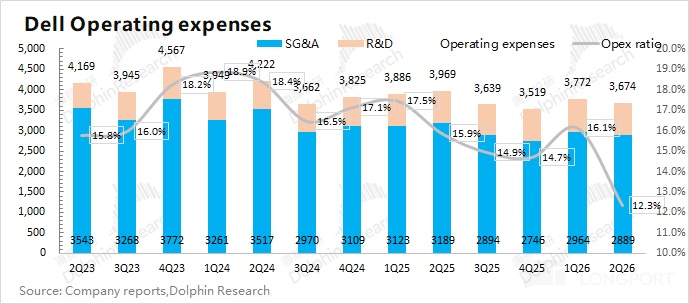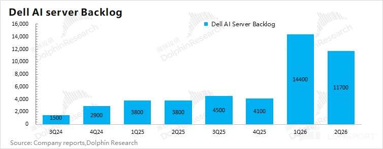 ②AI 服务器的下季度预期:在二季度进行集中交付后,公司本季度 AI 服务器的积压订单降至 117 亿美元,但仍处于较高的水位。按当前这个积压订单,海豚君预期下季度公司 AI 服务器的收入仍有将近 60 亿美元。