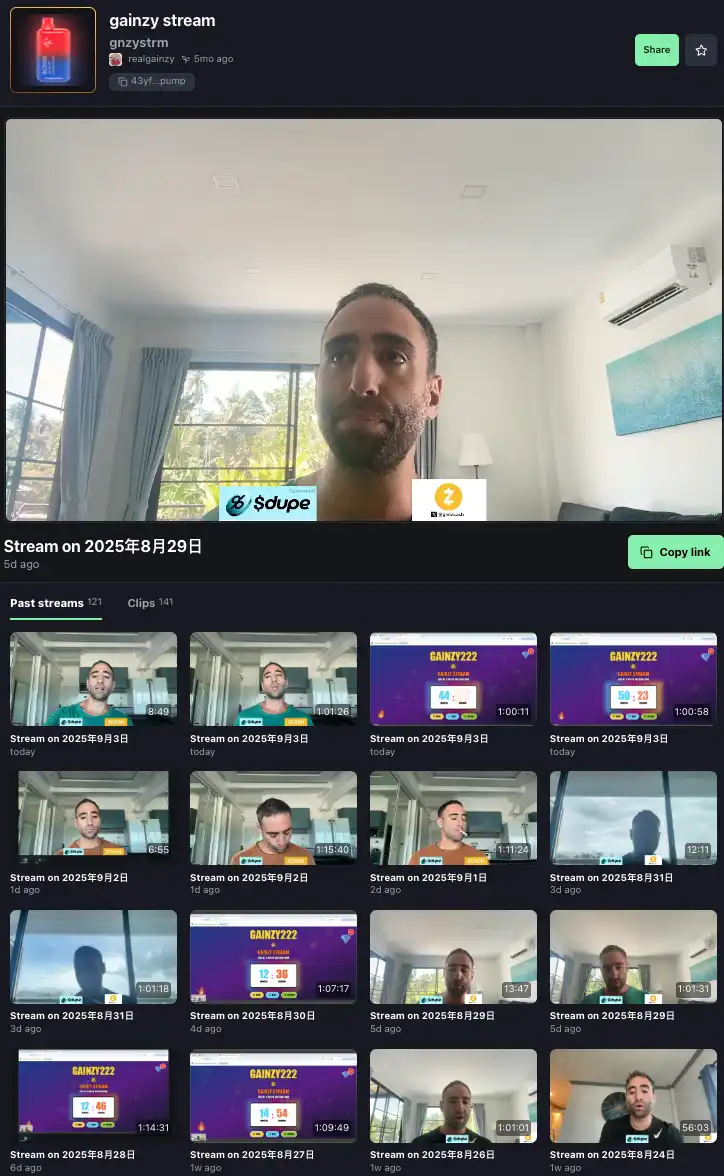 虽然社区已经拥有代币,但其中多个成员同时还拥有自己的「直播币」,像是 @nevergoon100 运营的 GOON,采用了更加娱乐化的路线。GOON 的直播常常充满荒诞和戏剧性元素,这种风格虽然争议不断,但确实成功吸引了大量年轻投资者的注意。