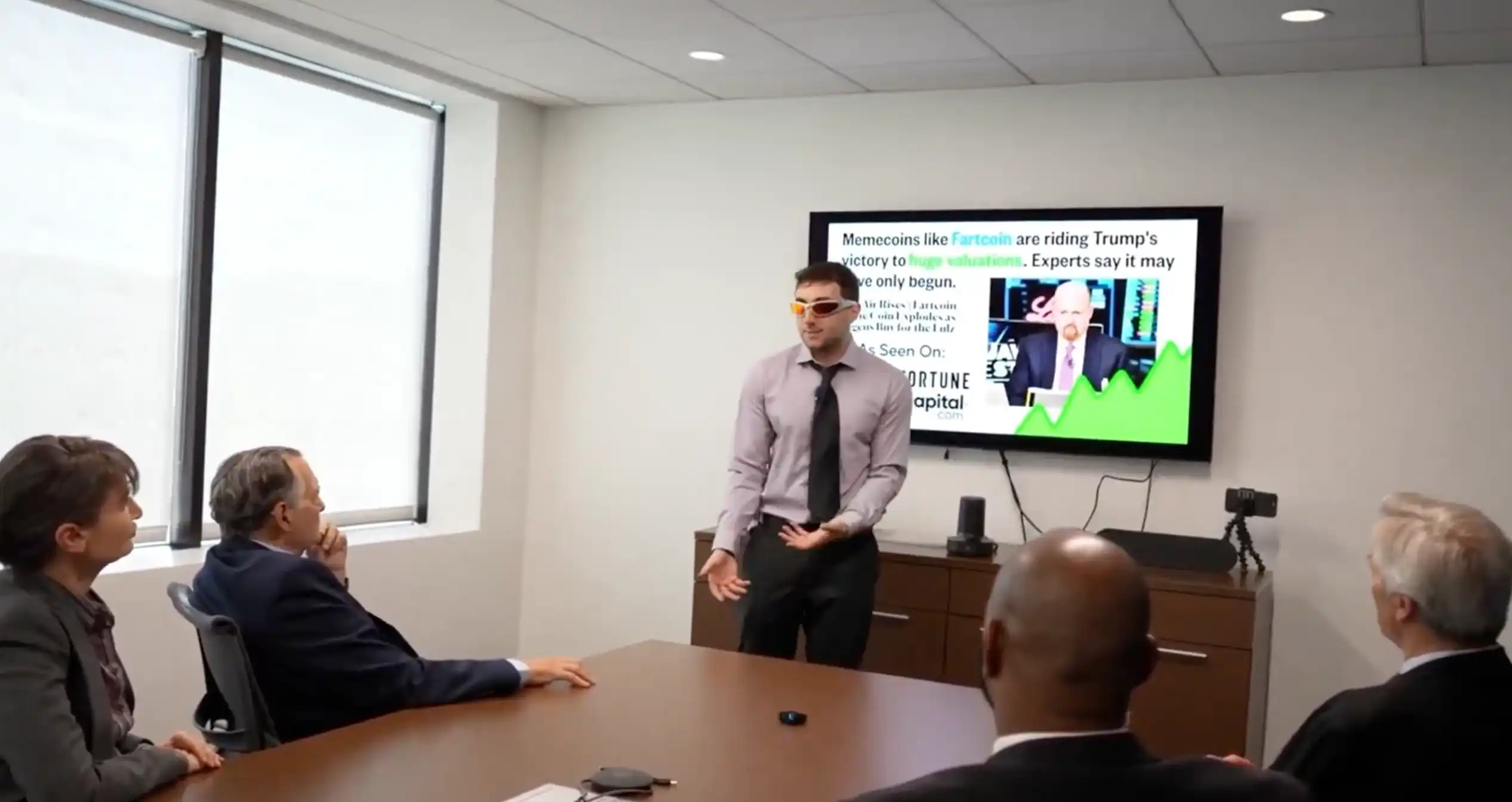 他通过 Twitch 频道和 pumpfun 进行直播,内容涵盖交易演示、区块链讨论甚至游戏直播如 Path of Exile 2。他的帖子显示出强烈的社区归属感,经常做一些 memecoin 的狂热举动,有时候是带着 Muard 去大街上向人强制推销 Chillhouse,有时是闯入传统基金公司推行 Fartcoin。虽然十分无厘头,但确实从某种层面上让更多人接触了 Memecoins。