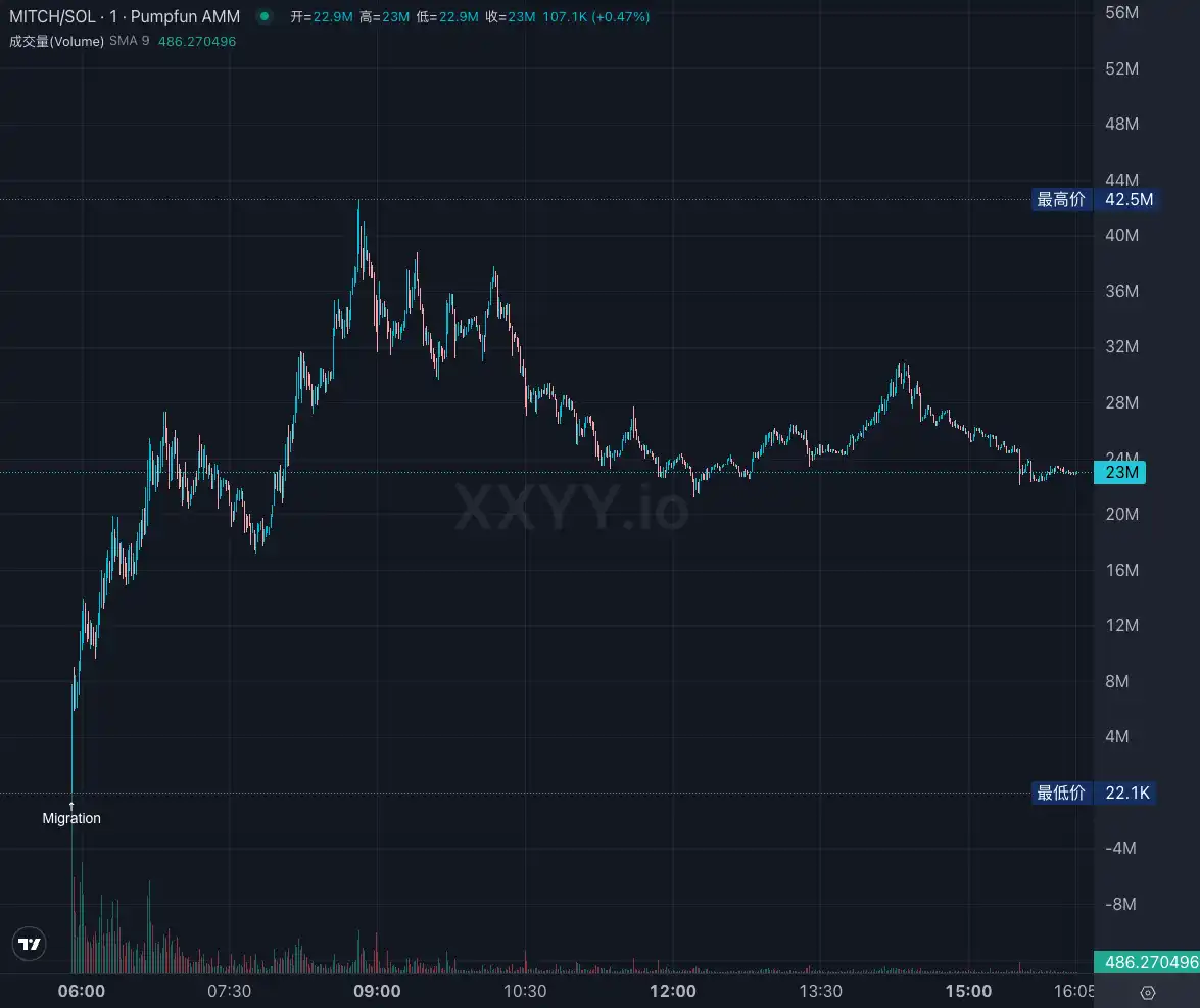 MITCH 在上线后迅速上线 MOONSHOT,也让他的市值在短时间内突破 4200 万美元,但如果按照「流通市值」计算的话,最高市值仅约 840 万美元。