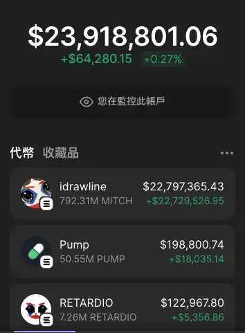 这次回归,Mitch 推出了自己的 creator coin $MITCH。他亲自购买了 80% 的供应量,表示不会锁定但不会出售,只会在未来的直播中送出,最后仅 20% 进入流通。在发行声明中,他强调这不是慈善,而是「个人娱乐实验」。但他的地址 God.SOL 中躺着醒目的 2400 万美元,让这个实验真的能让他本人「娱乐」。