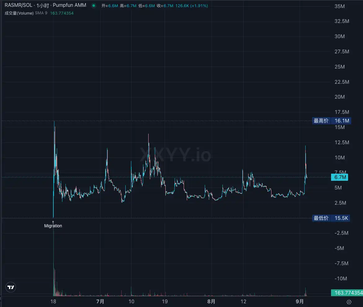 他此前推出的直播代币 $rasmr 目前市值在 500-700 万美元之间波动,而他同样持有该代币的 80%。