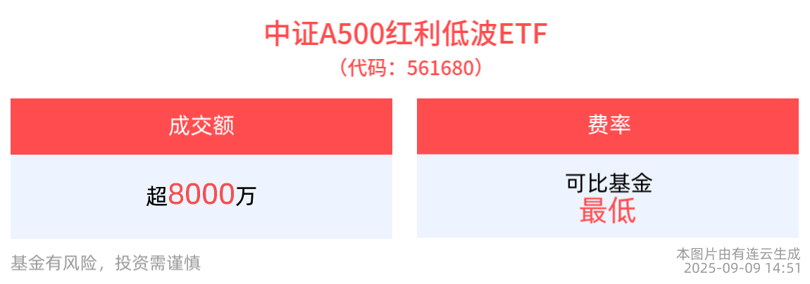 流动性方面,中证A500红利低波ETF盘中换手14%,成交8393.75万元,市场交投活跃。拉长时间看,截至9月8日,中证A500红利低波ETF近1年日均成交1.11亿元。