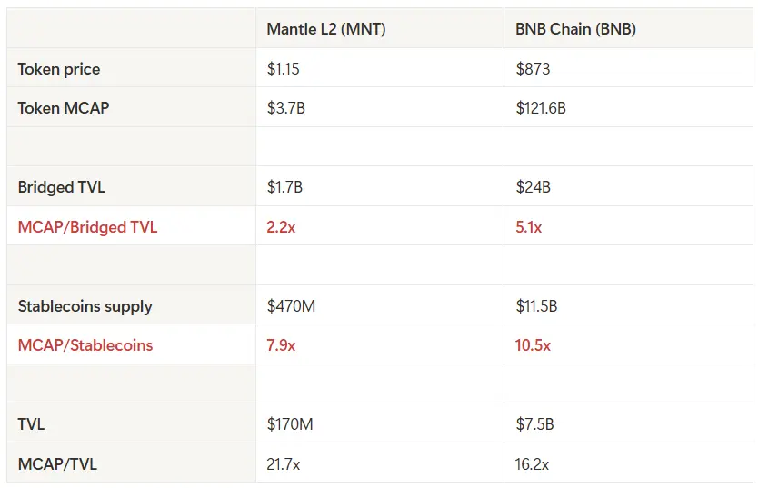 多种估值方法突显了 MNT 相对于同类代币的显著低估。
