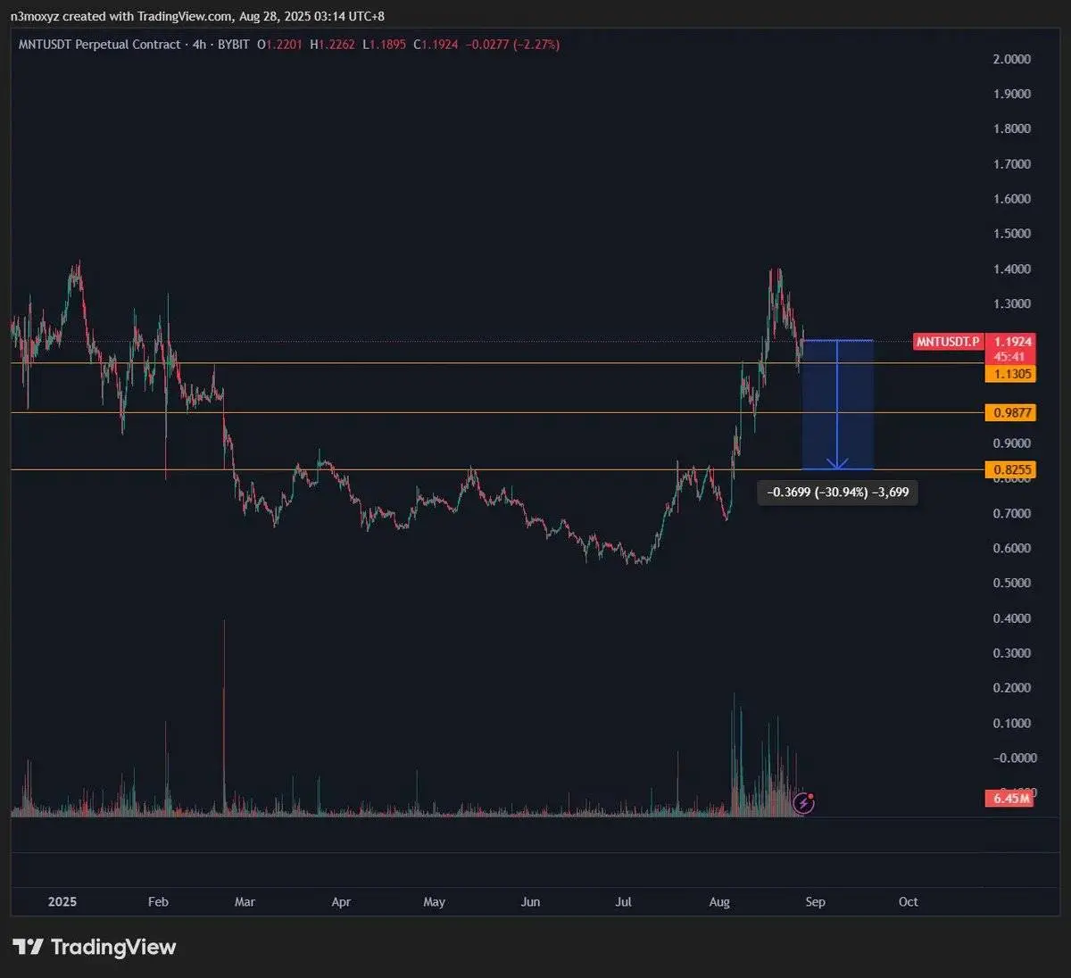 执行风险:回购与销毁尚未获得批准。如果没有这一点,MNT 仍只是一个抵押/费用代币。