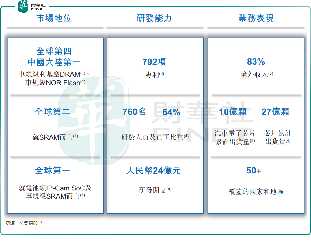 数据显示,按2024年收入计,公司在电池类IP-Cam SoC及车规级SRAM领域排名第一,在SRAM领域排名第二。自成立以来,公司的芯片产品累计出货量达27亿颗,其中汽车电子芯片累计出货量10亿颗。