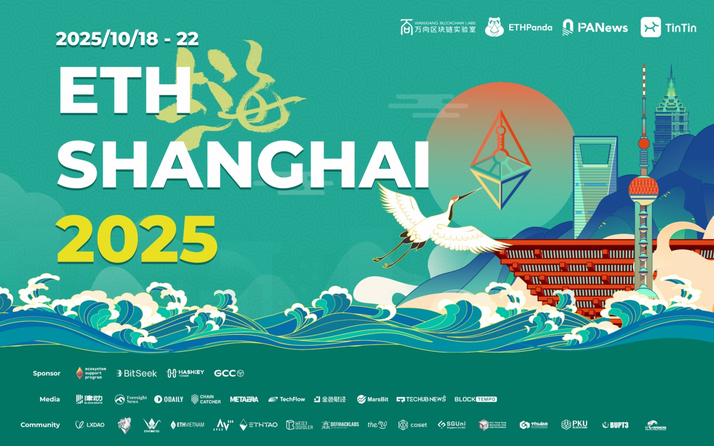 2025 年 10 月,备受瞩目的 ETHShanghai 2025 再度回归啦!作为亚太地区最具影响力的以太坊盛会之一,第四届 ETHShanghai 将于 10 月 18 日至 22 日在上海举办,主题为 “拓展以太坊,塑造开放未来”(Scaling Ethereum, Shaping the Open Future)。