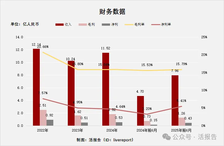 收入分别约为人民币12.14亿元、10.24亿元、11.52亿元、4.7亿元及7.96亿元,年复合增长率为-2.60%;