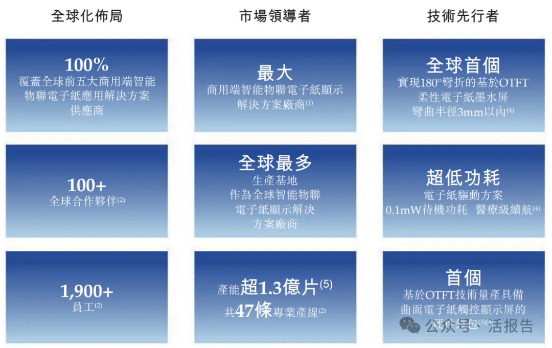 公司深耕电子纸显示技术领域十余载,基于自主拥有的电子纸显示模组设计制造的核心技术,专注于研发和生产各类智能物联电子纸显示模组及相关显示解决方案。公司的产品矩阵覆盖全尺寸、全色彩等多种形式,并广泛应用于智慧零售、智慧办公、智慧教育、智慧物流、智慧交通及电子阅读器和新兴应用等场景,以数字化的新型显示解决方案赋能物联网时代的智慧生活与工作场景。
