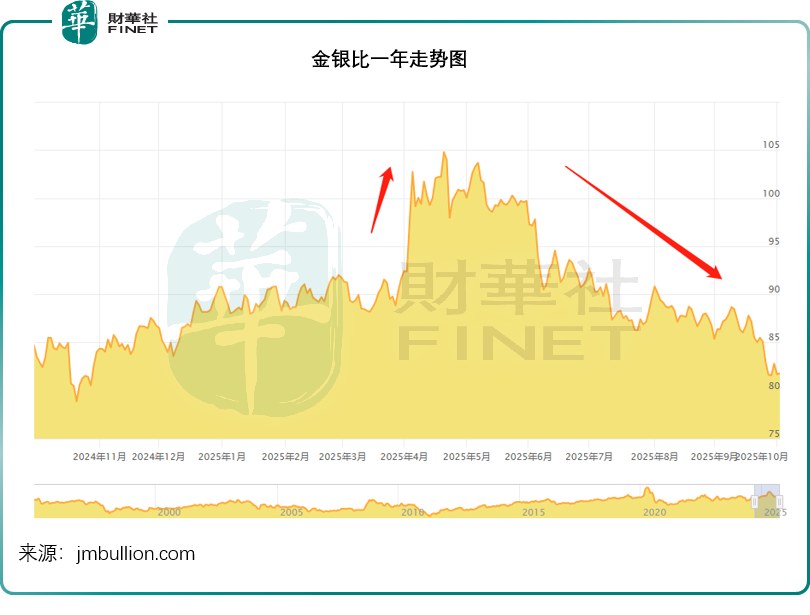 但随着银价攀升,金银比已持续下降,当前已接近80的临界点。