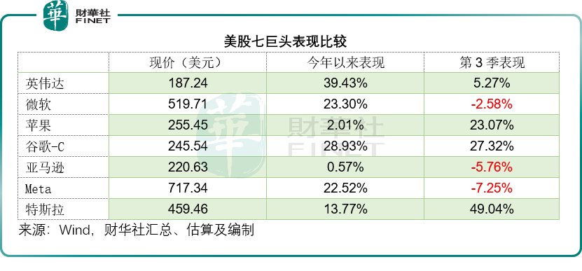 另一方面,苹果(AAPL.US)和谷歌-C(GOOG.US)于第3季开始追落后,前者或因为iPhone新品表现预期向好,后者则因为其AI云表现超预期。